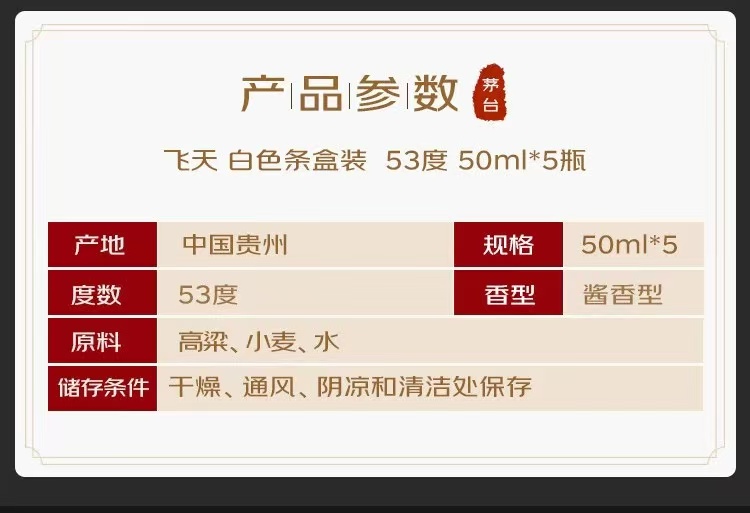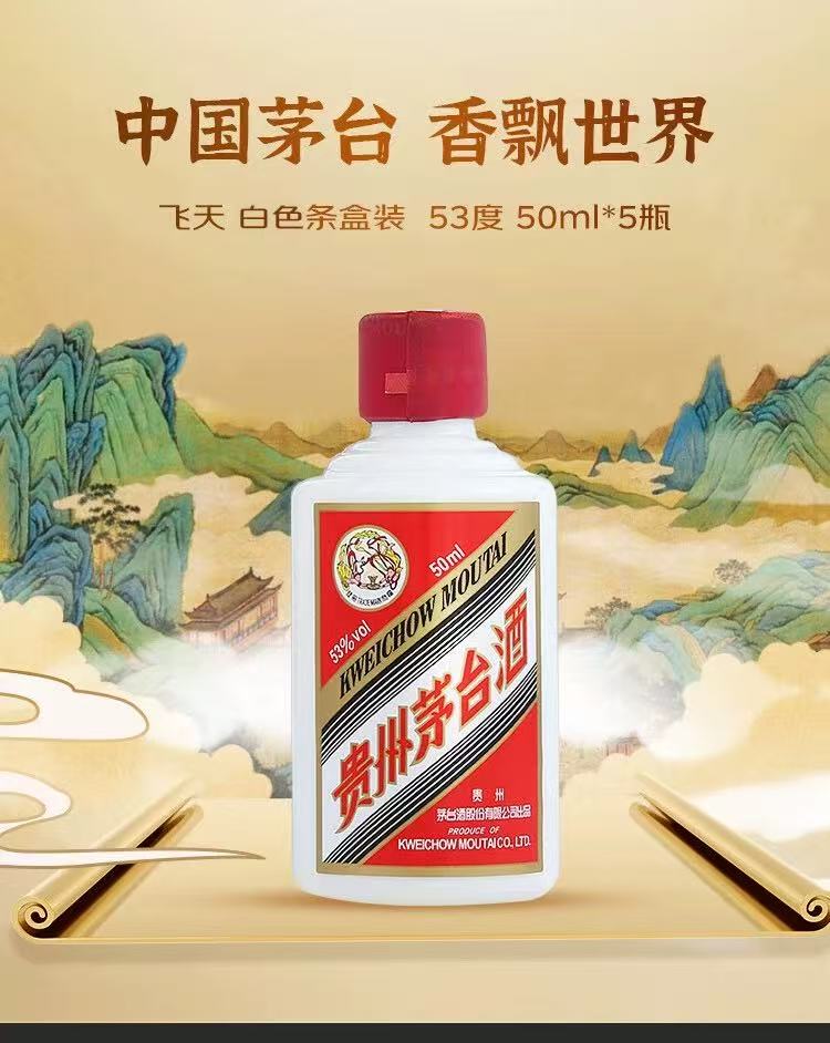 茅台飞天 盒装 酱香型白酒 53%VOL 50ml*5瓶 小金条/小白条随机发
