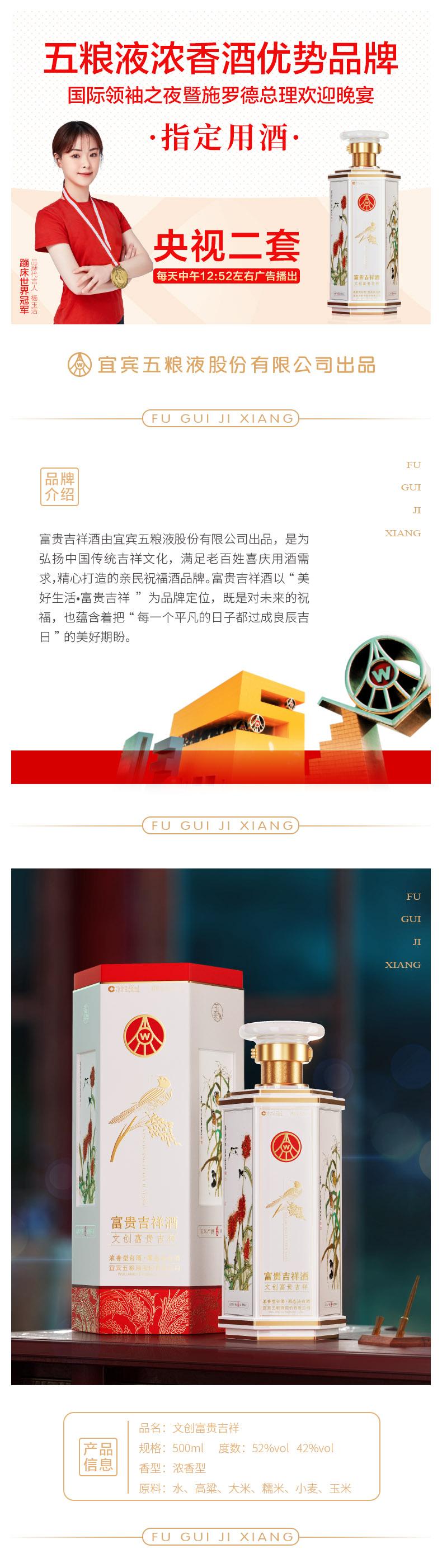 五粮液股份 富贵吉祥文创五谷 纯粮食白酒52%vol 500ml*6
